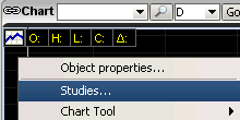 Click the Studies button on the Chart toolbar, then select the appropriate study,