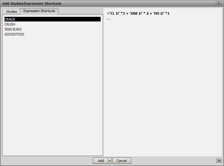 The Add Studies window also has a tab to add Expressions Shortcuts.