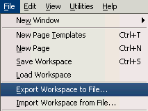 You can export workspaces to a file. To export a workspace, click on the File option in the menu bar. Select the Export Workspace to File option.