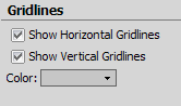 The gridline options give the choice of whether to show the Horizontal or Vertical Gridlines and what color they will be if they are displayed.