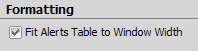 Unchecking Fit Alerts Table to Window Width causes the table to become fixed width and not change dynamically when the alerts window is resized. However, the columns can still be resized if desired.