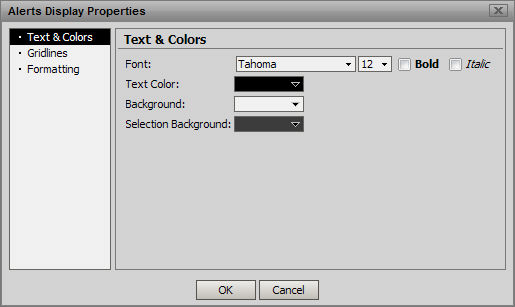 Right click in the viewing pane or header of the Alerts Display window and select Display Properties. The Alerts Display Properties window appears.